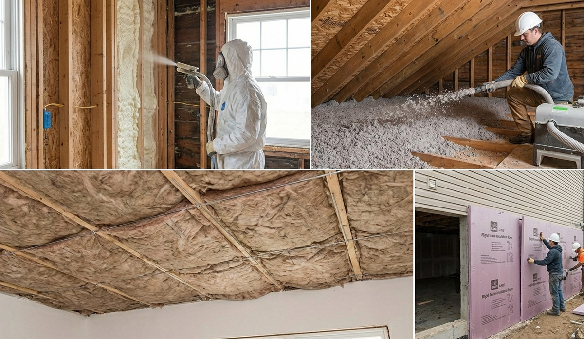 Energy-efficient insulation installation for walls, attics, and crawl spaces.