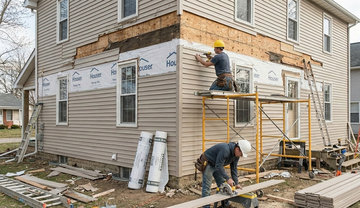 Exterior siding installation and replacement. Vinyl, fiber cement, and wood siding options.
