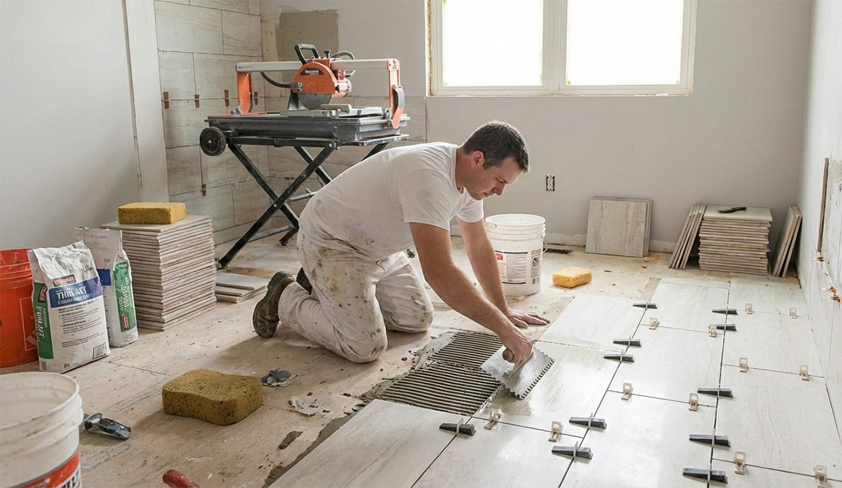 Professional tile installation for floors, walls, backsplashes, and showers. Custom tile work with precision.